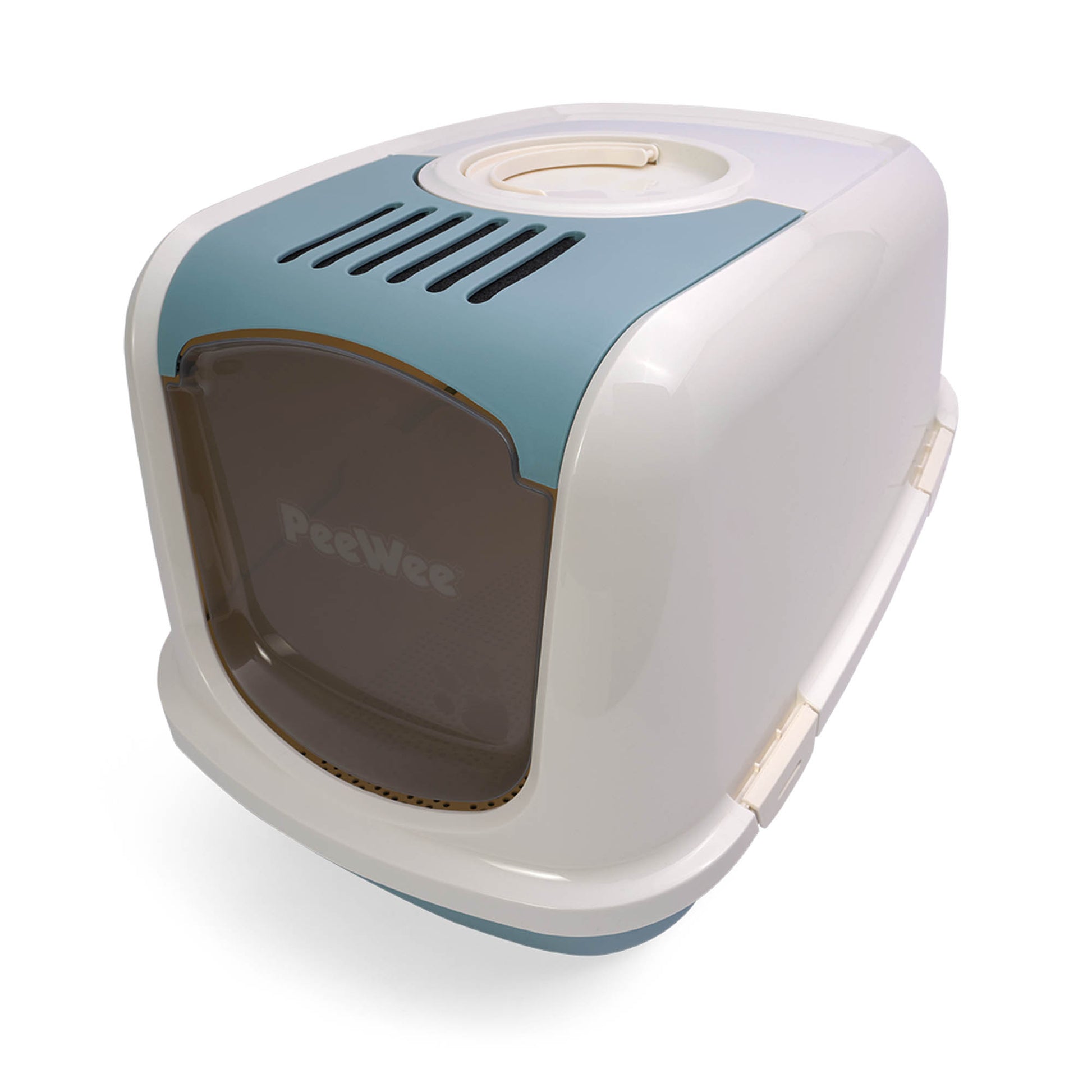 PeeWee EcoDome XXL Katzenklo Taubenblau – Starterpaket mit Haube & 3 kg Holzpellets